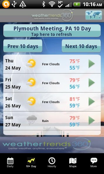 Trazido a você pela Weather Trends International, o líder global de orientação climática comercial acionável do ano seguinte nos últimos 10 anos, wt360 Lite projeta a temperatura, a precipitação e as tendências de queda de neve até um ano antes de 6,4 milhões de locais em 195 países com precisão de 80%+ líderes do setor, de acordo com um auditor independente. As previsões de 1 a 15 dias de curto alcance e as previsões a cada hora também estão disponíveis globalmente.